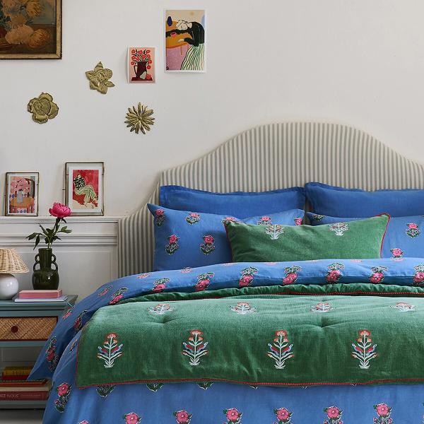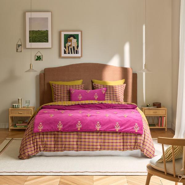 Edredon matelassé velours côtelé Dylis Framboise 150x150 cm