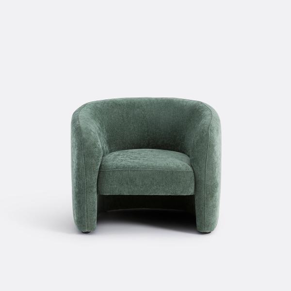 Compact. Epuré. Monochrome. Voici LANDINE, le fauteuil qui se démarque par son design contemporain et minimaliste, que viennent adoucir ses lignes arrondies et son revêtement en tissu effet chenillé fin, subtilement chiné. Élégant et raffiné.Description