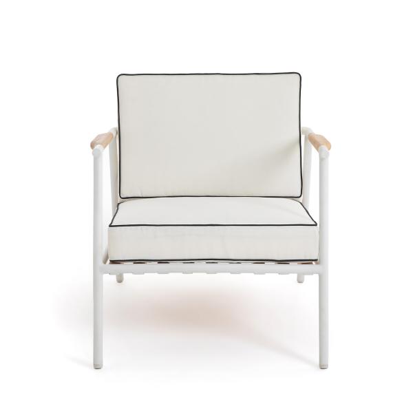- Revêtement coussins Olefin 100% polyester, coloris blanc, finition piping coloris noir