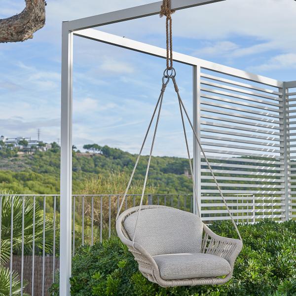 Coque en aluminium, corde synthétique tressée artisanalement … le fauteuil suspendu de jardin Irati est une création exclusive de nos designers.Description