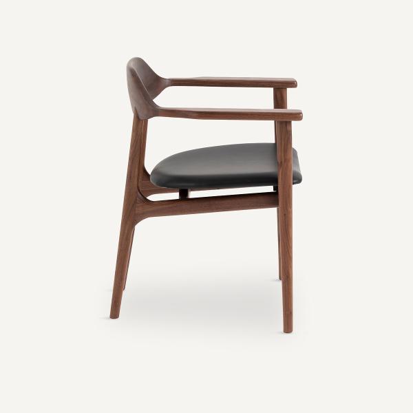 Design intemporel et finitions soignées, le fauteuil de table Arié allie parfaitement le bois massif et le cuir véritable.