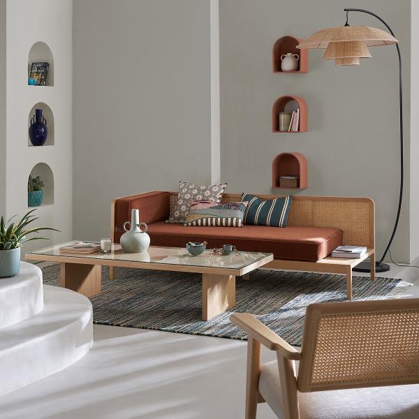 Alliance parfaite du hêtre et du cannage... Lons est un fauteuil au design inspiré des années 50. Moelleux, son épais coussin d’assise et son tissu texturé vous accueilleront confortablement.Une création de nos designers La Redoute Intérieurs, fabriquée en Italie.