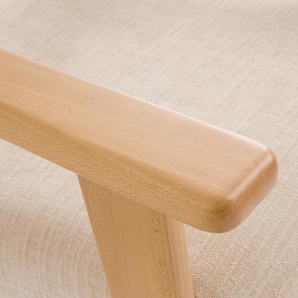 - Structure, accoudoirs et pieds en hêtre, finition vernis polyuréthane teinté chêne clair