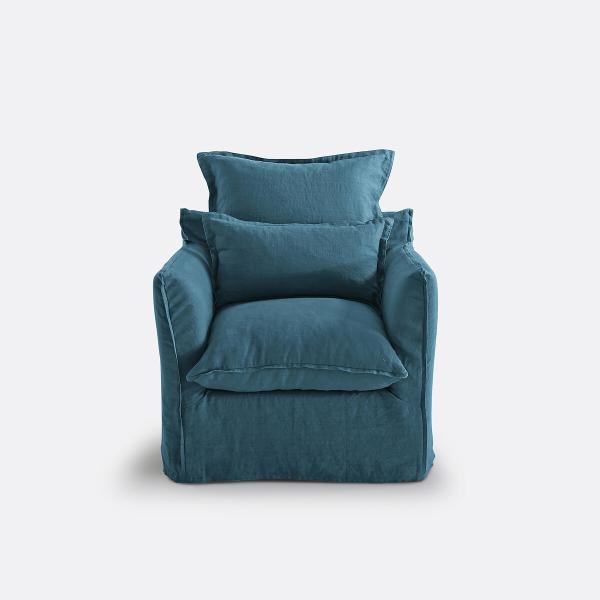 Fauteuil lin froissé, bultex, Odna Bleu paon 1P