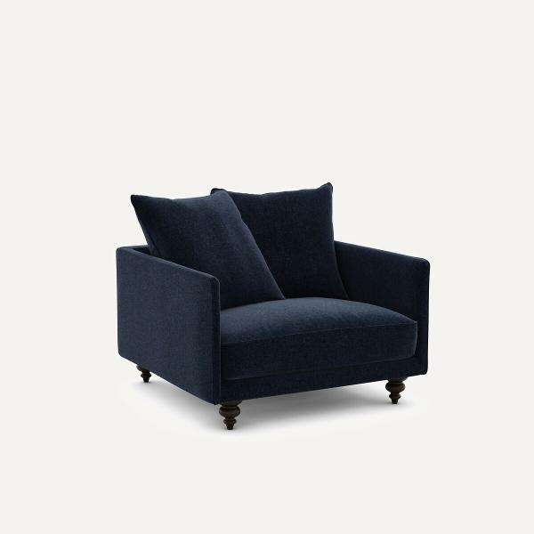 Fauteuil velours chenille, Lazare Bleu de minuit 1P