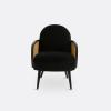 Fauteuil velours et cannage, Buisseau Noir T. Unique