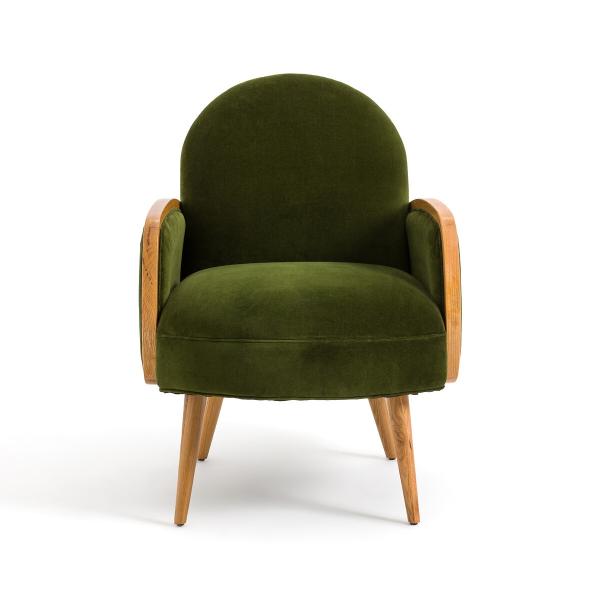 Fauteuil velours et chêne, Buisseau Vert T. Unique