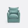 - Assise (1 coussin) : mousse 28kg/m³ et poche remplie de fibres polyester (65%) et flocons de mousse polyether (35%)