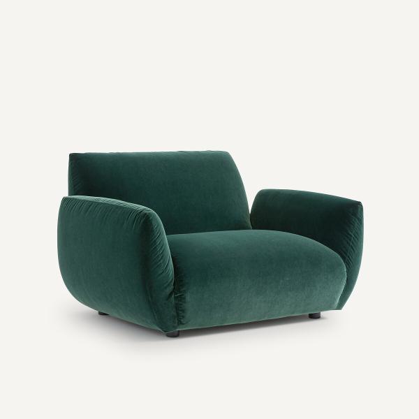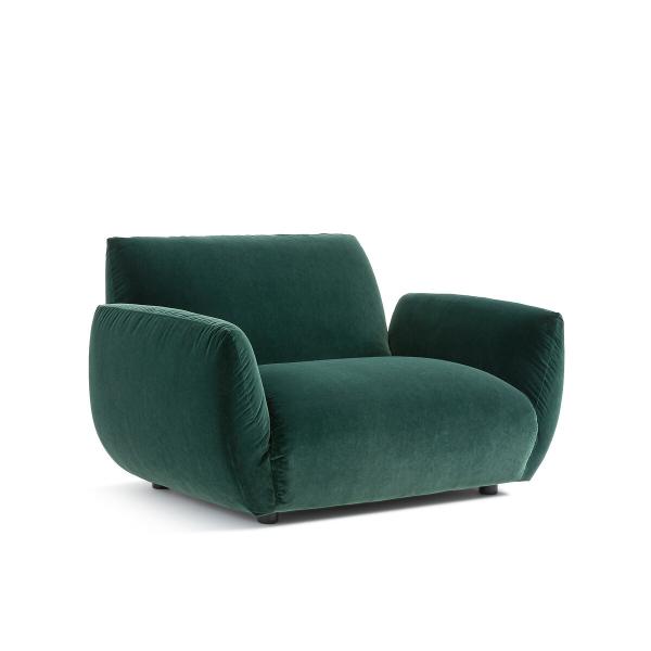 Doux et enveloppant. Spogano se démarque par une assise au ras du sol et des proportions généreuses. Ses lignes rassurantes et son rembourrage ultra confortable en font un fauteuil totalement dédié au bien-être. L'art de vivre signé AMPM.Fabrication Italienne.