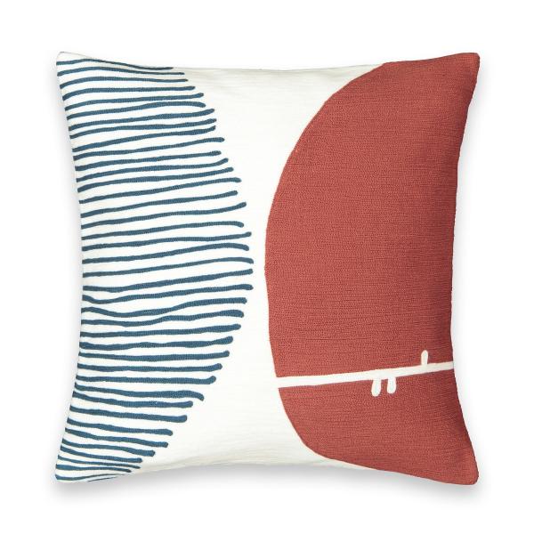 Housse de coussin brodée Mihnéa bleu/terracotta 45x45 cm