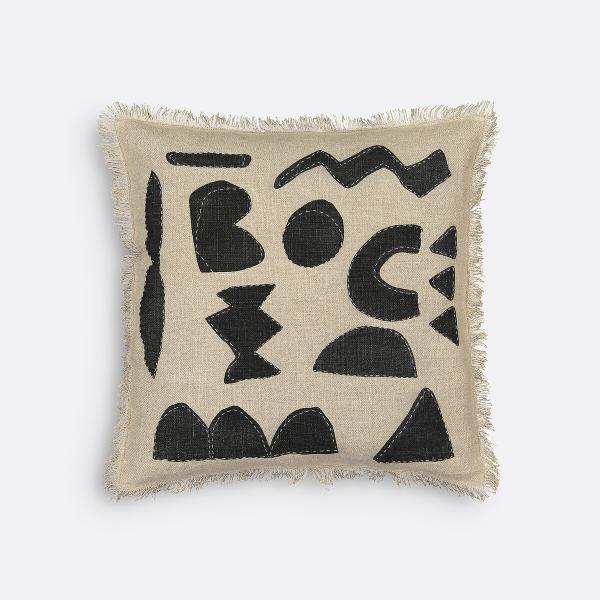 Housse de coussin carrée, Sokobe Naturel/noir 45x45 cm