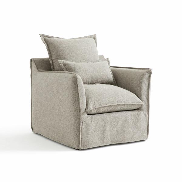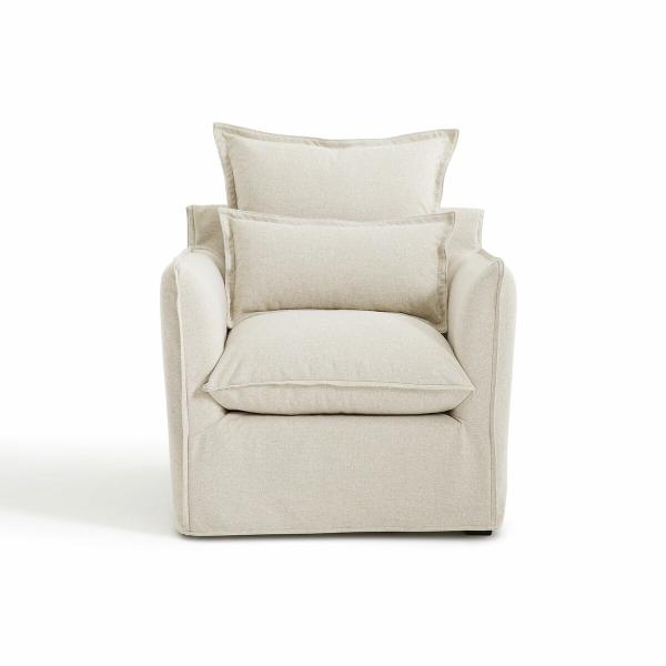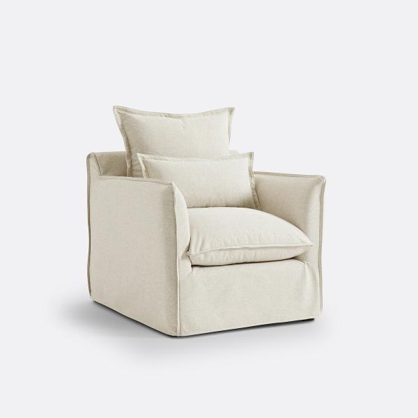 Housse de fauteuil velours, Odna Ecru 1 Place