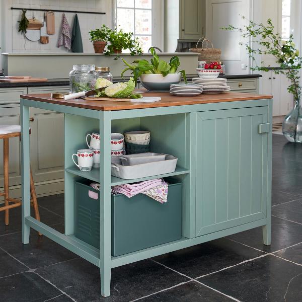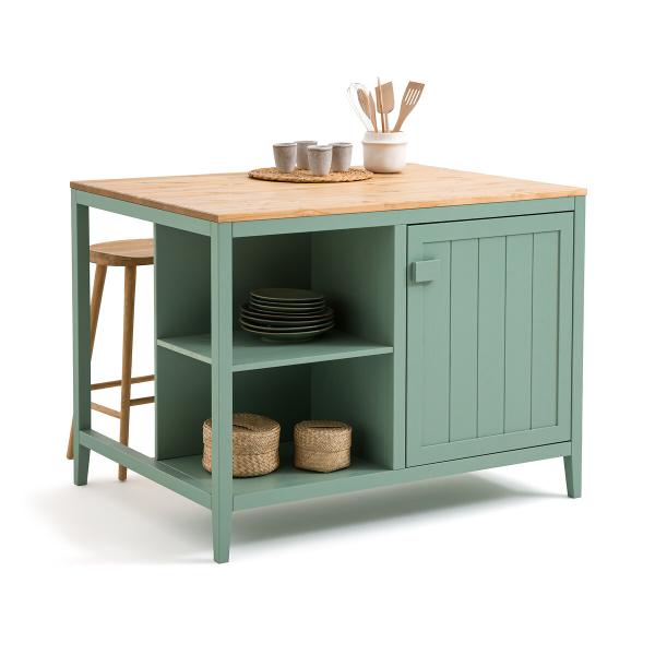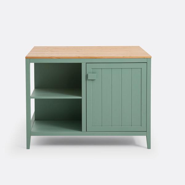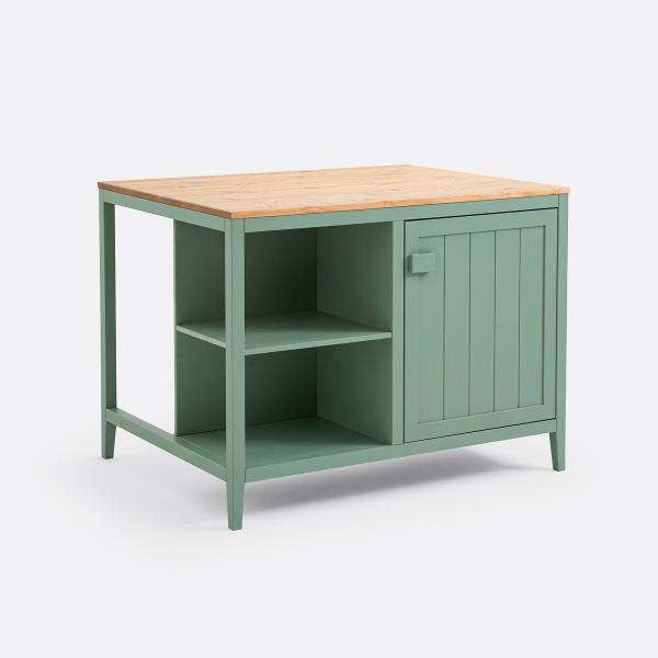 Ilot de cuisine Carlos, pin Vert/naturel T. Unique