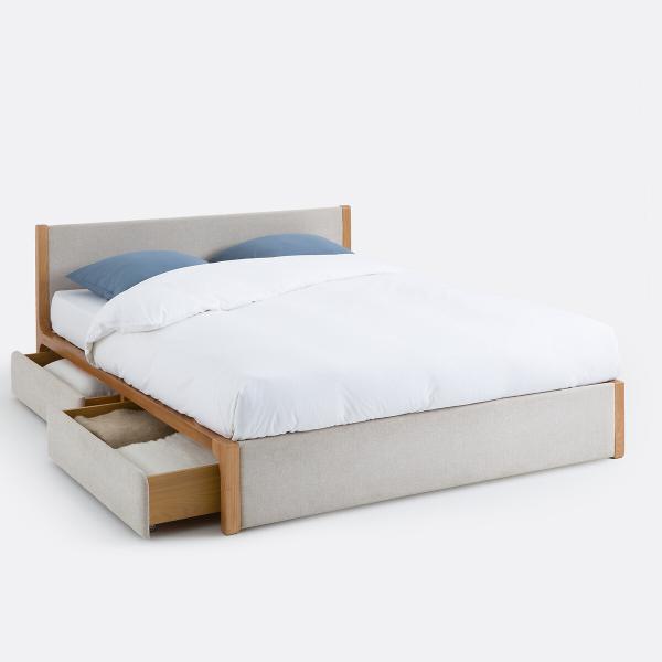 - Tête et pied de lit en frêne et multiplis, garnis de mousse polyuréthane 20 kg/m³.