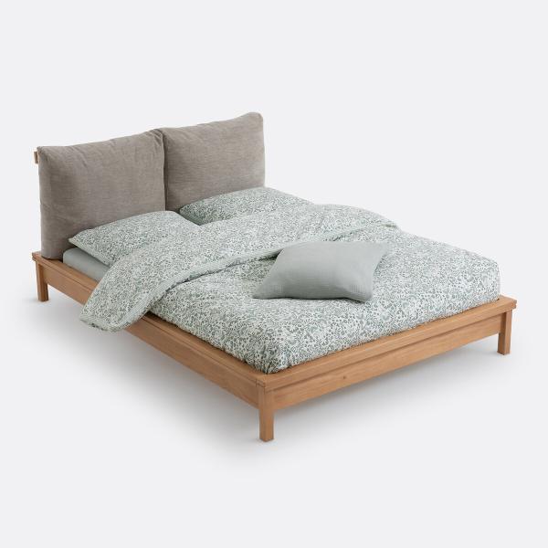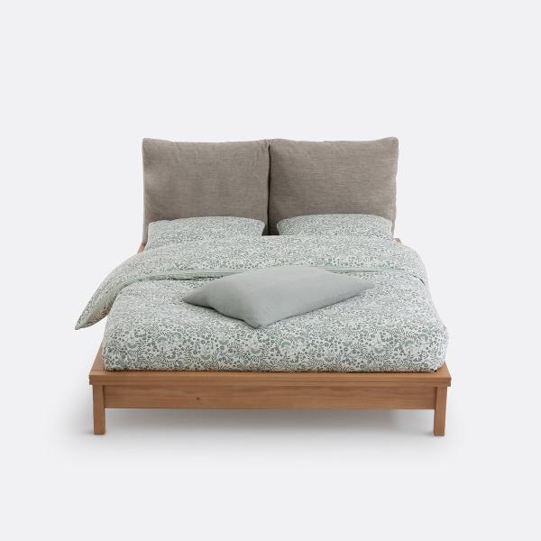 - 2 gros coussins amovibles à fixer sur la tête de lit (attaches velcro). Garnissage fibres polyester et revêtement tissu 100% polyester