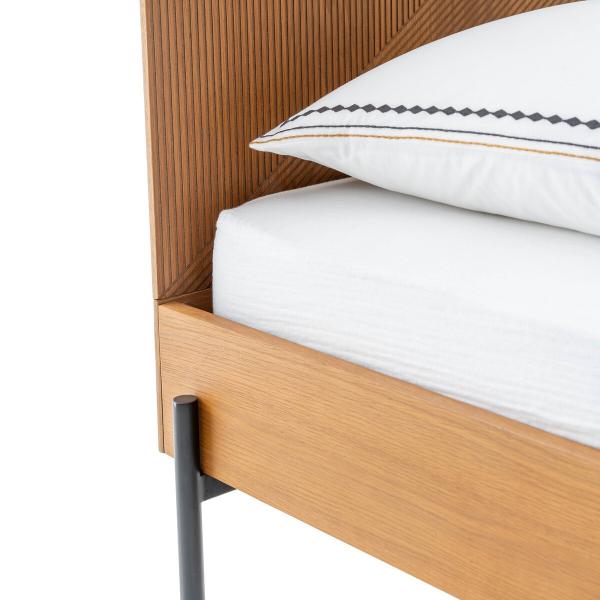 Le lit avec sommier Lodge nous propose une vision de l'élégance à l'esprit vintage inspiré des années 50 très en vogue dans la déco. Ici, la tête de lit striée et les pieds métal évoquent le talent inventif et créatif des designers de l'époque.