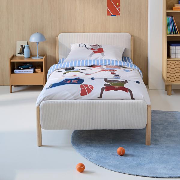 Un lit qu’on adore autant pour son look que pour son confort : tête et pied de lit rembourrés en velours côtelé, structure en pin massif. Parfait pour une chambre d’enfant au style doux et chaleureux ! Un design La Redoute Intérieurs.Description
