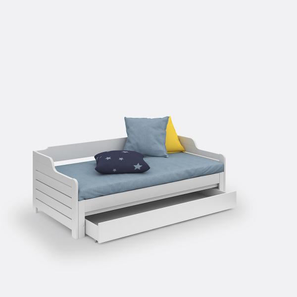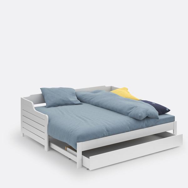 Lit banquette extensible, tiroir, sommier, Grimsby Blanc 90x190 cm