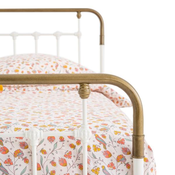 Le lit enfant à barreaux Asper. Inspiré des anciens lits, il revient réactualisé dans une association de blanc et de laiton.