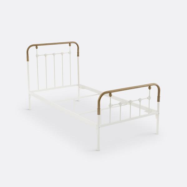 Lit en métal, Asper Blanc/laiton 90x190 cm