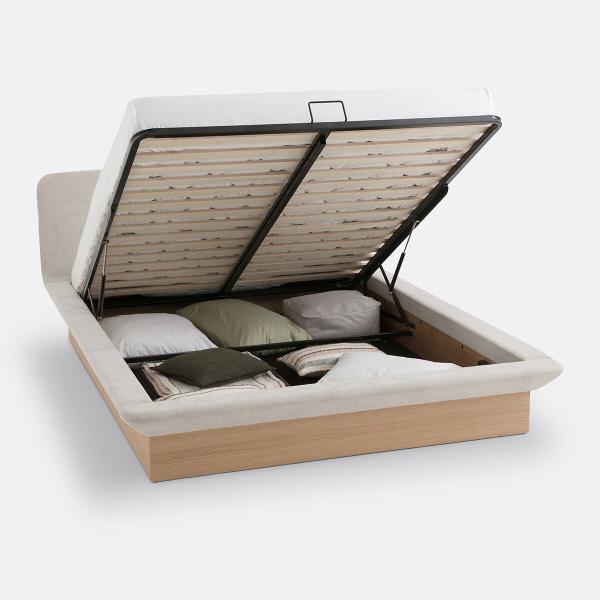 Lit-coffre avec sommier relevable TIVARA Beige 160x200 cm