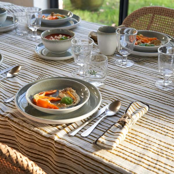 Cette finition étant entièrement artisanale, chaque pièce est unique et apportera une touche de singularité à votre table.