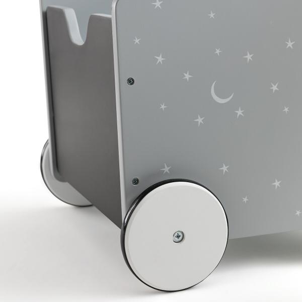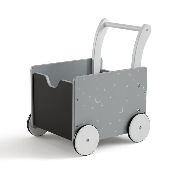 Nomade et ludique. Le chariot à roulettes Estrela, en bois certifié FSC®, accueille les jouets et les peluches des p’tits loups.Grâce à ses 4 roulettes et à sa poignée à bonne hauteur, ils pourront promener leurs petites affaires dans chaque pièce de la maison. Nouveau terrain de jeu en vue !