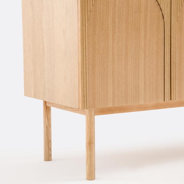- Caisson et portes en MDF plaqué frêne, finition vernis polyuréthane