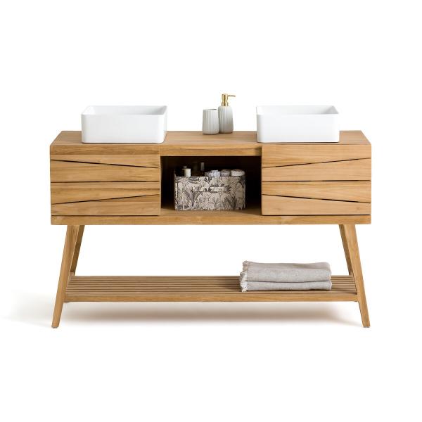 Meuble double vasque teck massif, Kito Bois clair teck naturel T. Unique