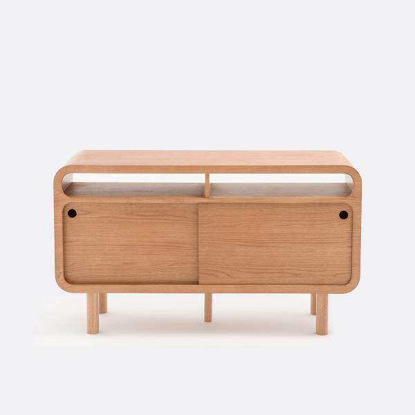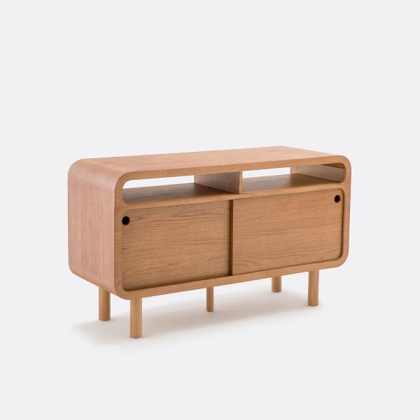 - Pieds en hévéa massif teinté chêne foncé, finition vernis polyuréthane
