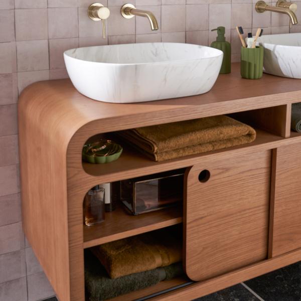 Meuble double vasque vintage, Palmo Plaqué chêne T. Unique