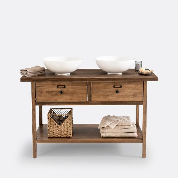 Meuble double vasques pin massif, Lunja Bois foncé T. Unique