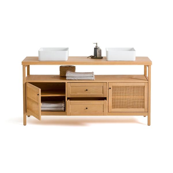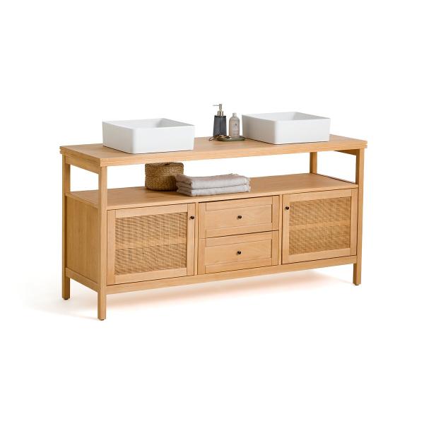 Esprit maison de famille pour ce meuble sous vasques en pin massif et cannage, qui donnera à votre salle de bain une touche plus traditionnelle. Il accueillira vos serviettes éponge et accessoires de beauté. Une création La Redoute Intérieurs.Description