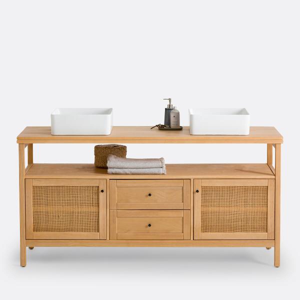 Meuble sous double vasque L160 cm, Gabin Naturel T. Unique