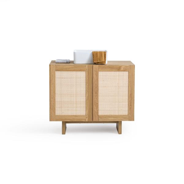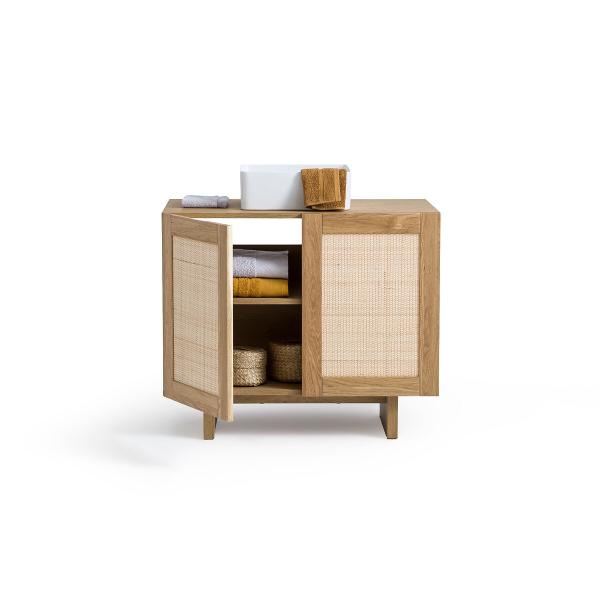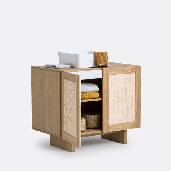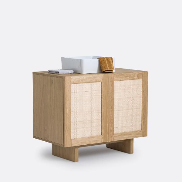 Meuble sous vasque chêne et cannage L90 cm, Arty Naturel T. Unique
