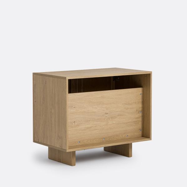 - Caisson, étagère et pieds en panneaux de particules plaqué chêne