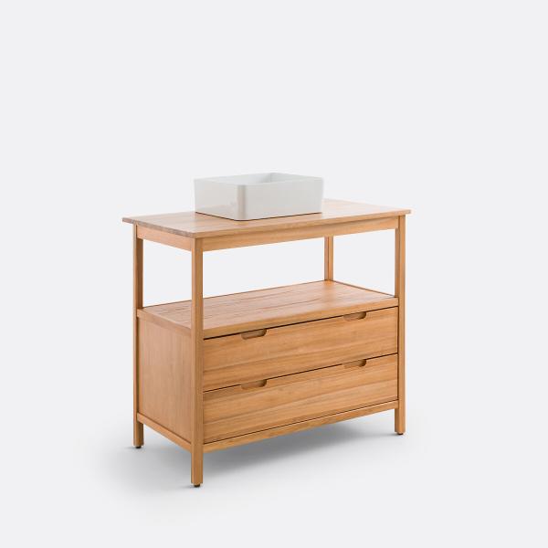 En acacia certifié FSC®, le meuble sous vasque Cheira est adapté aux pièces d’eau. Conçu pour accueillir une vasque, il se compose de 2 tiroirs et d’une niche ouverte sous plateau.Set de salle bain, serviettes éponge, produits de beauté... à chacun sa place.