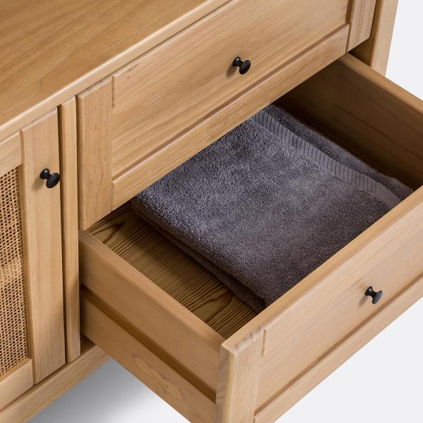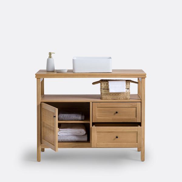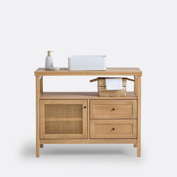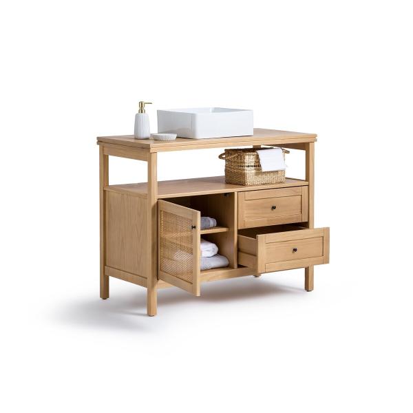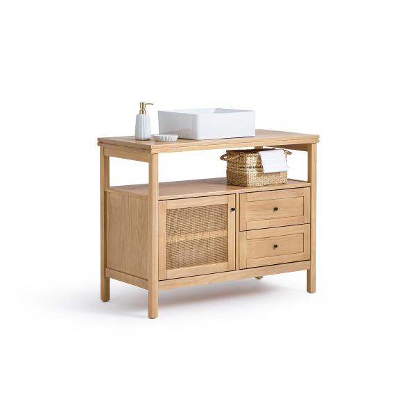 Esprit maison de famille pour ce meuble sous vasque en pin massif et cannage, qui donnera à votre salle de bain une touche plus traditionnelle. Il accueillira vos serviettes éponge et accessoires de beauté. Une création La Redoute Intérieurs.Description