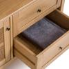 - Structure et tiroirs en pin massif FSC® légèrement brossé teinté chêne, finition vernis nitrocellulosique