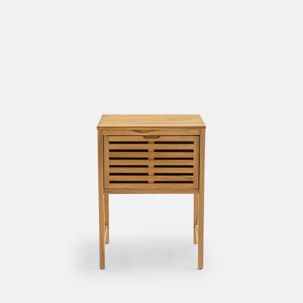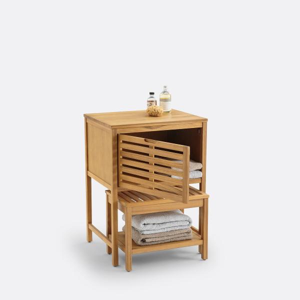 Parfaitement adapté aux pièces d?eau, le meuble sous vasque HAUMEA, en acacia, est idéal pour les petits espaces.A associer avec le banc de salle de bain HAUMEA, en acacia, 50cm, qui se glisse sous le meuble.