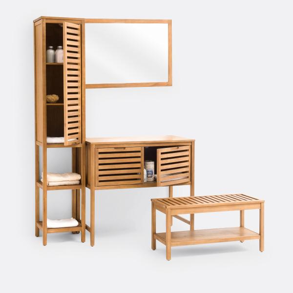 Le meuble sous vasque, en acacia huilé, HAUMÉA. Pratique pour y ranger vos serviettes et vos accessoires, il apportera une touche déco à votre salle de bain.