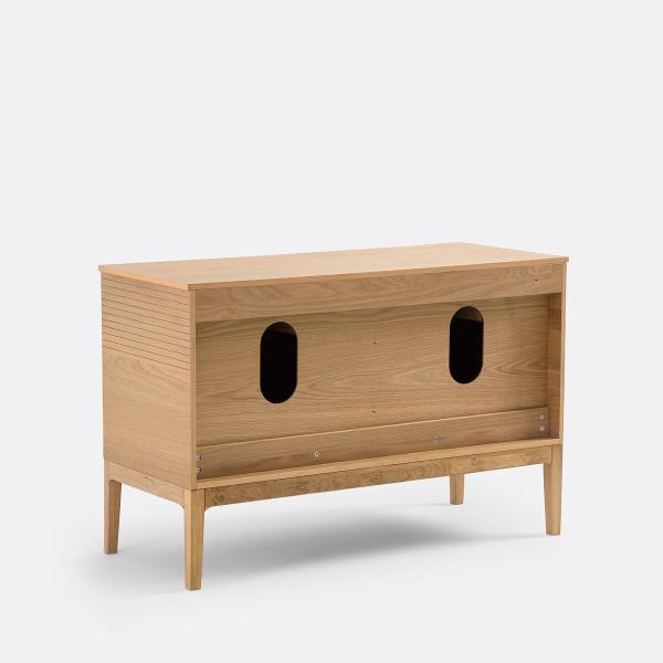 - Structure en chêne et MDF plaqué chêne, vernis nitrocellulosique