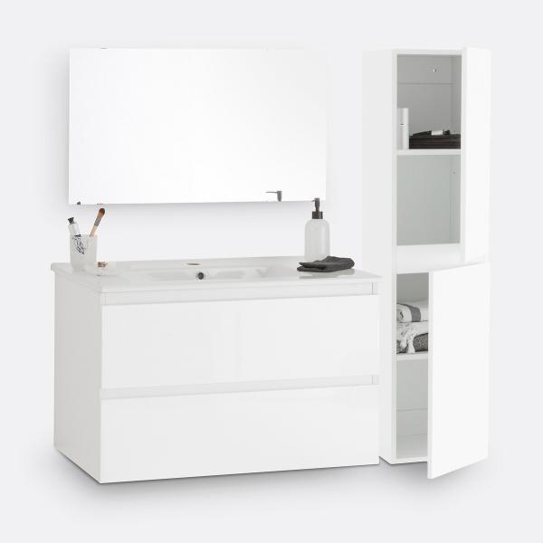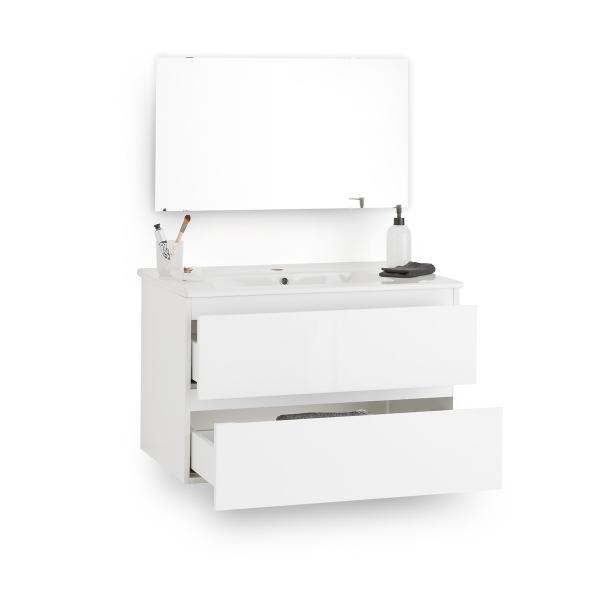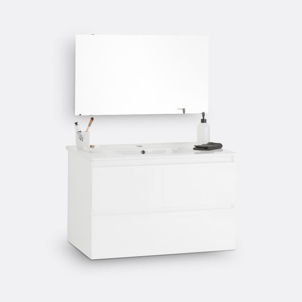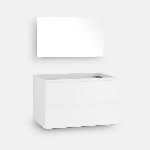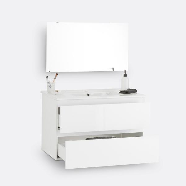 Meuble sous vasque suspendu + miroir L80 cm, Pacci Blanc T. Unique