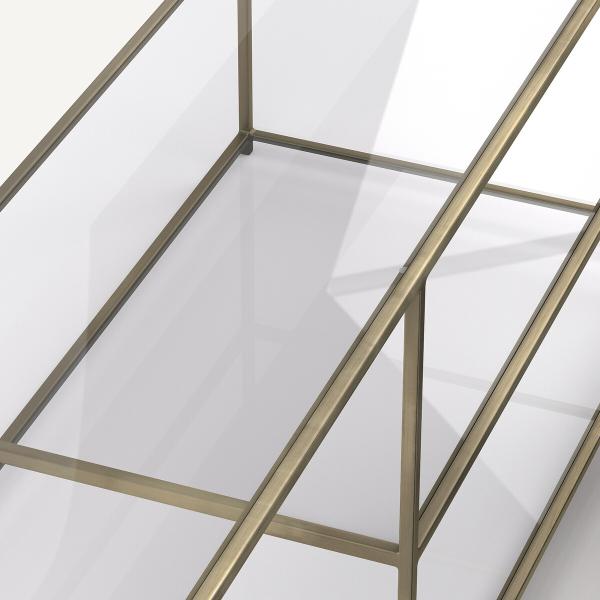 L'élégance du métal effet laiton vieilli et la transparence de ses plateaux en verre pour un style intemporel tout en légèreté.