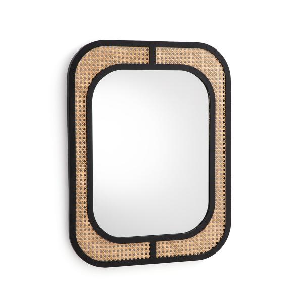 Miroir métal et cannage, Waska Naturel/noir T. Unique