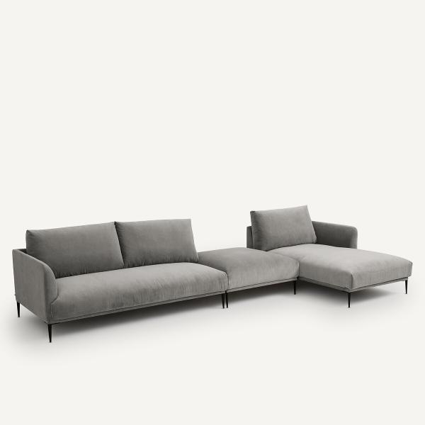 Méridienne velours stonewashed, Oscar design E.Gal Carbone Gauche