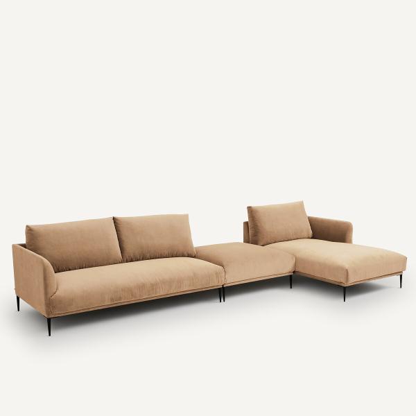 Méridienne velours stonewashed, Oscar design E.Gal Ficelle Gauche