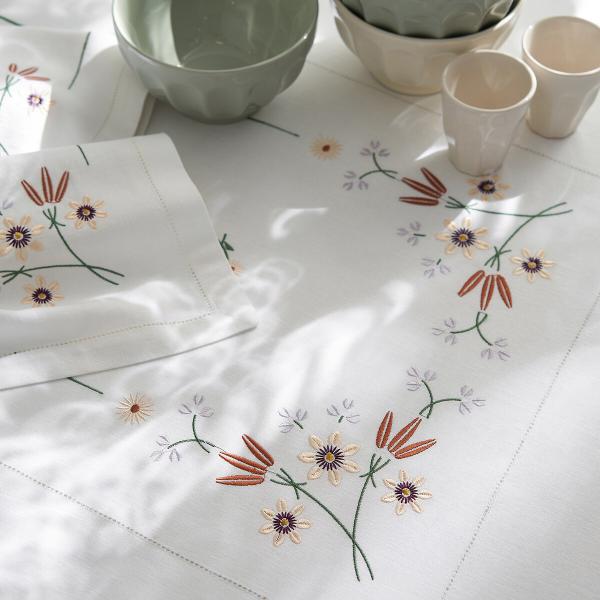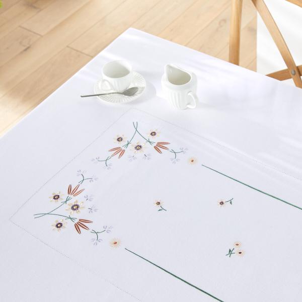 Nappe brodée coton/lin, Martha Blanc 150x300 cm