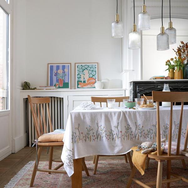 Nappe brodée métis coton/lin, Lara Blanc 150x300 cm