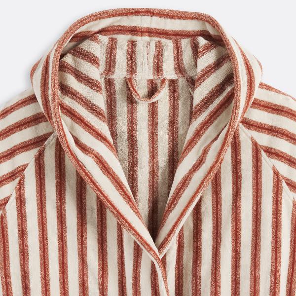 Peignoir capuche éponge velours, Makeba Rayé écru/marron 34/36